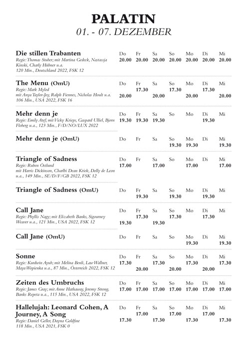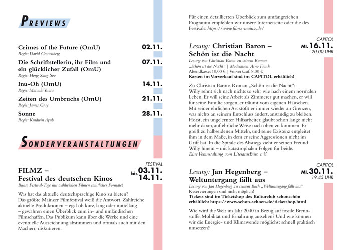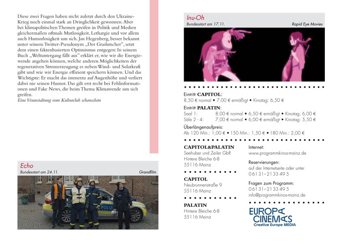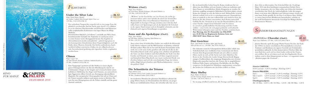 A small overview of monthly programs, advertisements, information displays and other printed matter.