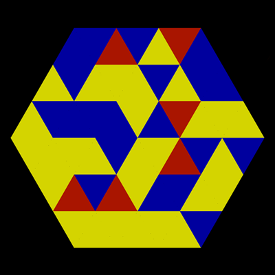 There is a hexagon made up of 54 triangles. The goal is to get the triangles into a specific pattern. The colors and positions of the triangles are randomly generated. Therefore, every playthrough is different.